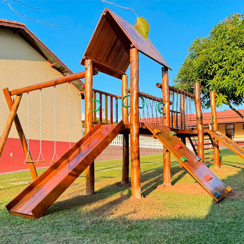 Casa do Tarzan com Balanço Duplo, Cama de Corda, Escorregador, Escada Marinheiro.